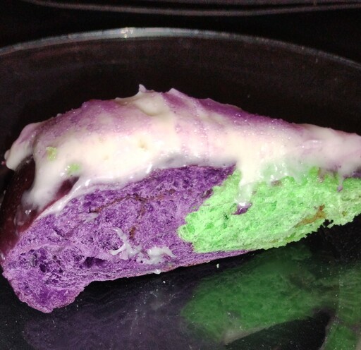 Idk if king cake ever really looks all that appealing? I remember the first time I ever tried it I was in high school. I almost didn’t eat it bc the green color kinda grossed me out. But I did and holy shit, it was amazing.