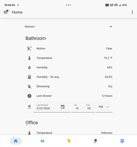Uses the humidity readings of my bathroom to determine whether I was in the shower: